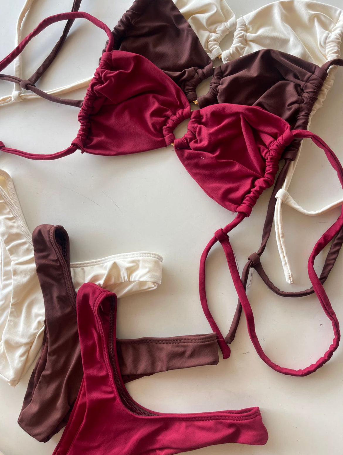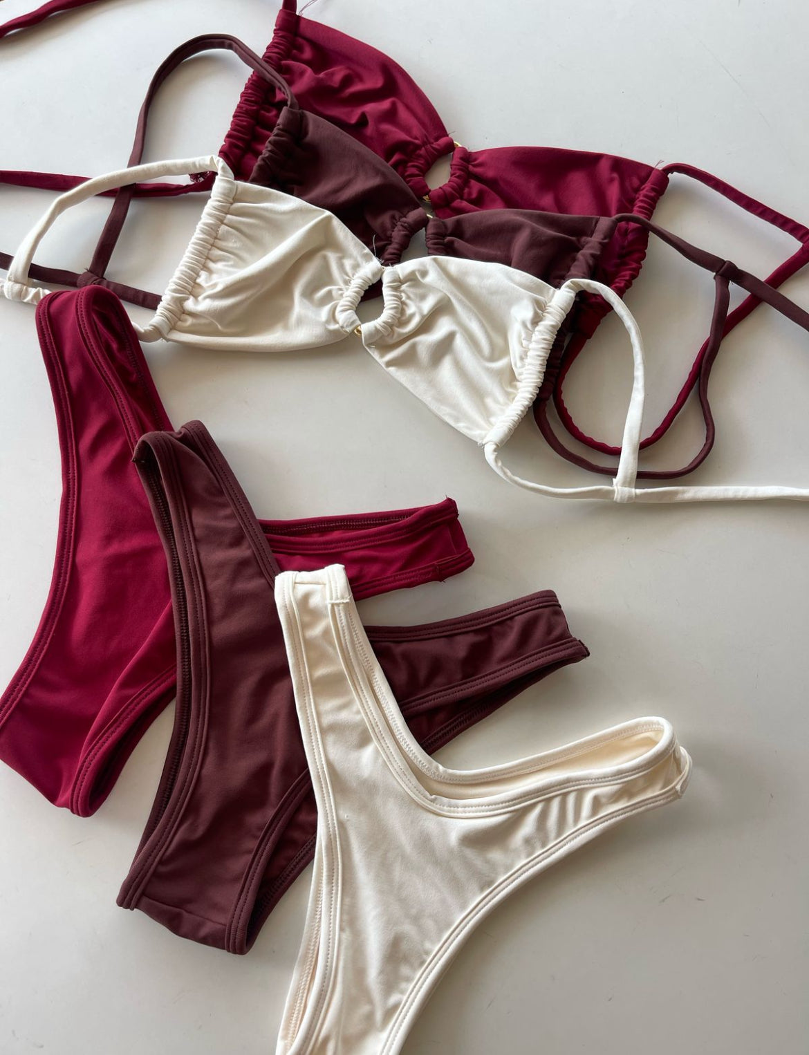 Confeccionado em tecido premium de toque macio e alta elasticidade , o biquíni Calhetas está disponível em três cores que se complementam: vinho intenso, marrom terra e off white. Ideal para quem busca estilo com conforto para curtir os dias de sol com inconvenientes.